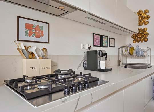 De moderne keuken is van alle gemakken voorzien en nodigt uit om heerlijke maaltijden te bereiden. Denk aan een verfijnd diner voor twee of een gezellige brunch met vrienden.