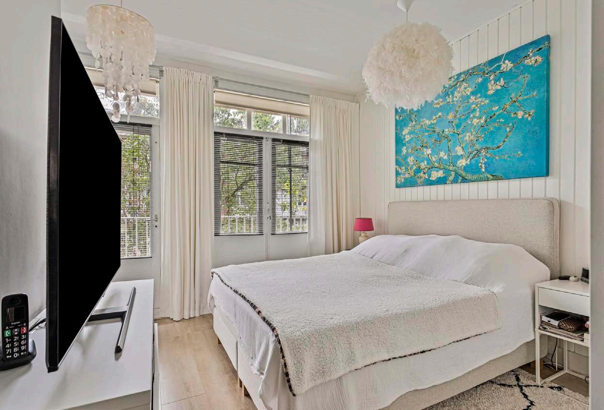 De slaapkamer, rustig gelegen aan de achterkant van het appartement, biedt een oase van rust. De mogelijkheid om een tweede slaapkamer te creëren maakt dit appartement ook ideaal voor degenen die extra ruimte wensen, bijvoorbeeld voor een thuiskantoor of een logeerkamer.