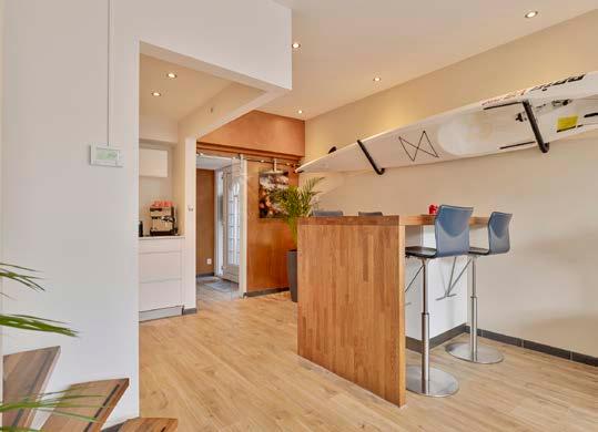 Bij binnenkomst verwelkomt de brede living je met een zee van licht, dankzij de grote ramen die een panoramisch uitzicht bieden op het kalme water. Stel je voor dat je ‘s avonds ontspannen op je bank zit, terwijl de laatste zonnestralen dansen op de golven buiten.