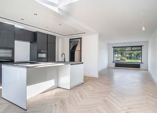 De uitgebouwde woonkamer is een ware oase van licht, dankzij de overvloed aan ramen en de openslaande schuifpui naar de achtertuin. De perfecte neutrale afwerking biedt jou het ideale lege canvas om je eigen droompaleis te creëren. Er is meer dan voldoende ruimte voor het plaatsen van een comfortabele hoekbank voor de tv waar je na een lange dag eventjes kunt ontspannen.