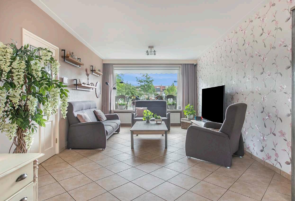 Ruime uitgebouwde woonkamer met plavuizen vloer en fraaie openslaande deuren naar de achtertuin. Mede hierdoor komt er veel licht de woning binnen. Ruime half-open keuken (L-vormig) met veel opbergruimte. De keuken heeft een ingebouwde koelkast, vriezer, vaatwasser, oven en een kookplaat met afzuigkap.