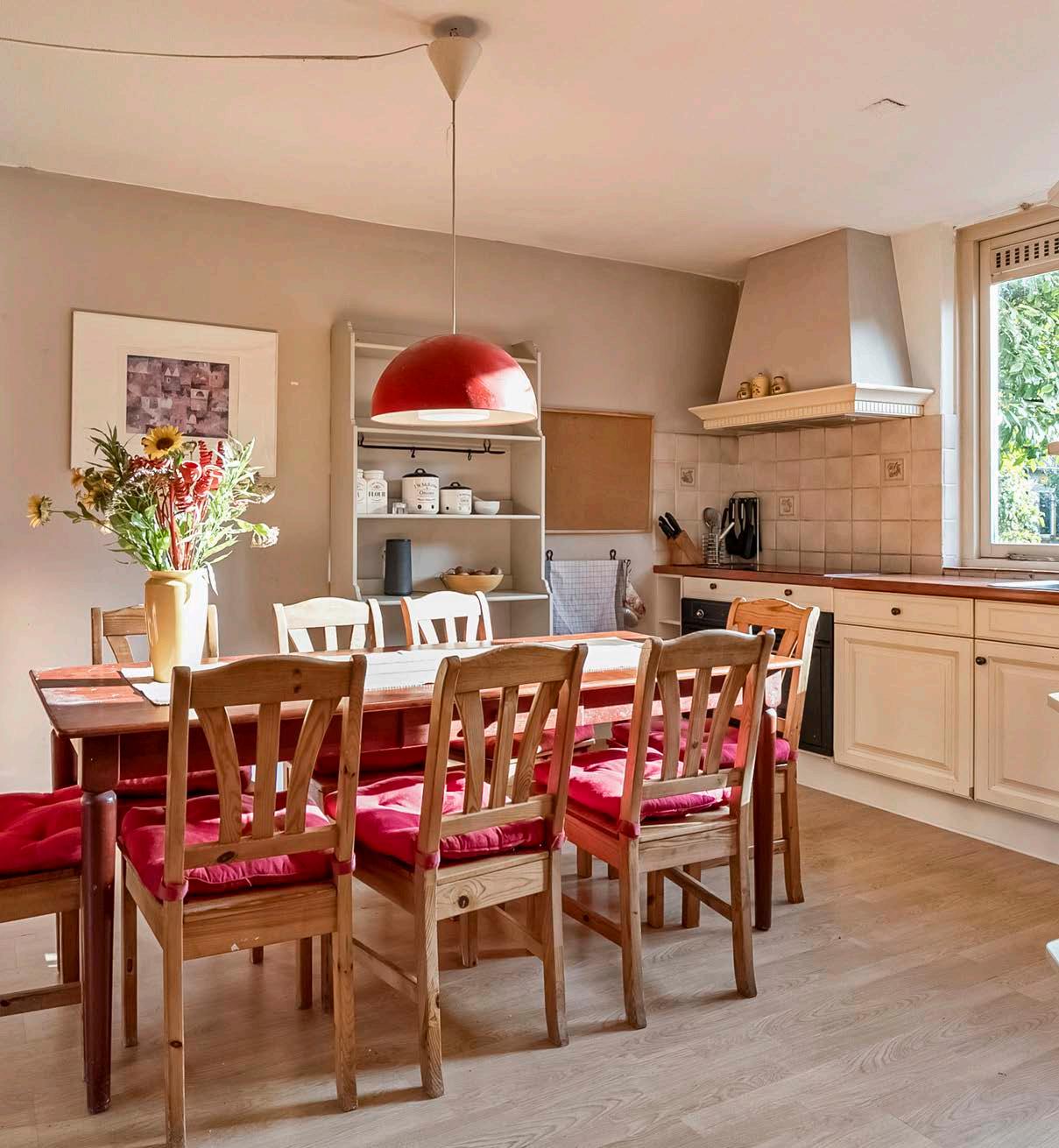 Het is een woning met veel zon, in de ochtend in de keuken en in de middag/avond zon in de achtertuin. De omgeving is veilig en de buren zijn allemaal aardige mensen. Er is nooit geluidsoverlast geweest in al die jaren dat we hier wonen.