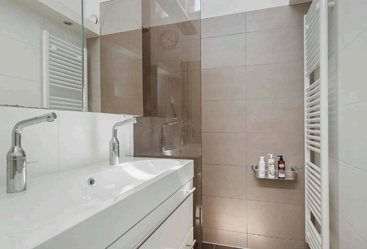 Op de verdieping bevinden zich 2 slaapkamers en de badkamer. De 2 slaapkamers zijn prima van formaat. Vanuit de masterbedroom heb je toegang tot de badkamer. De luxe badkamer is van alle gemakken voorzien en uitgerust met inloopdouche, wastafelmeubel met dubbele wastafel, 2e toilet en designradiator.