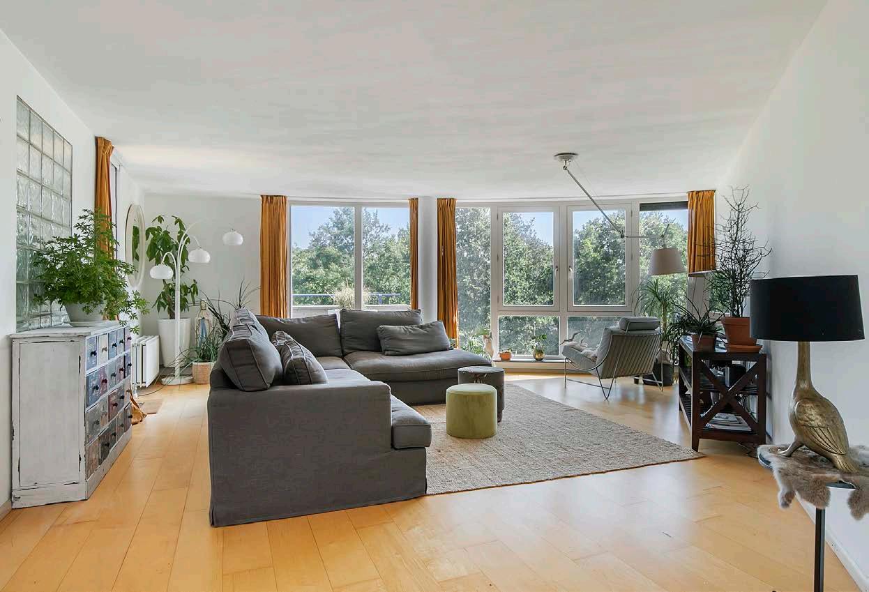 De ruime living met veel lichtinval en terras (zuidoosten) geeft je een vorstelijk vrij uitzicht. De glazen pui, over de hele breedte van de woonkamer van de grond tot het plafond geeft, los van het fantastische uitzicht, ook een enorm gevoel van ruimte. Daarnaast is de woonkamer voorzien van een houten vloer en gestucte wanden. Creëer een knusse zithoek en geniet van het verbluffende uitzicht.