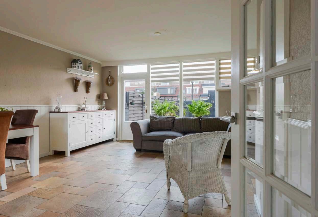 Vanuit de hal met het separaat toilet en de trap naar boven kom je binnen in de woonkamer. Een fijne hoeveelheid daglicht vult de ruimte en daar naast bestaat de verzorgde afwerking uit spac spuitwerk wanden in warme tinten, plinten en lijsten tegen het plafond en een tegelvloer gelegd in wildverband. Hierdoor profiteer je van een goede basis waarin je binnen no-time een fijn nieuw thuis zult creëren.