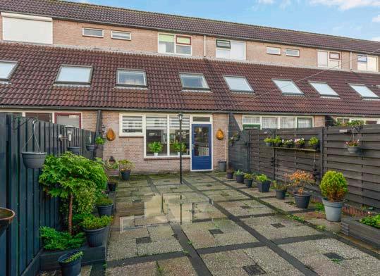 Vanuit de woonkamer kom je in de gunstig be meten achtertuin op het noordoosten. De tuin is aangelegd met bestrating en groen waardoor je hier naar onderhoud maar weinig omkijken hebt én tegelijkertijd ruimte voor een comfortabele tuin- of loungeset waardoor je hier optimaal van het bui tenleven kunt genieten.