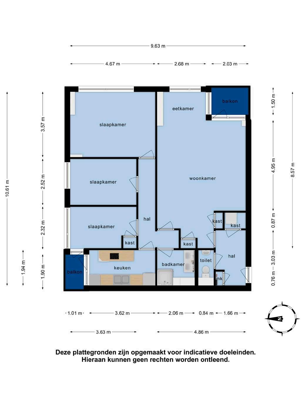 Het appartement beschikt over een lichte woonkamer, een gesloten keuken, 3 slaapkamers, een verzorgde badkamer, twee balkons en een berging in de onderbouw op de begane grond.
