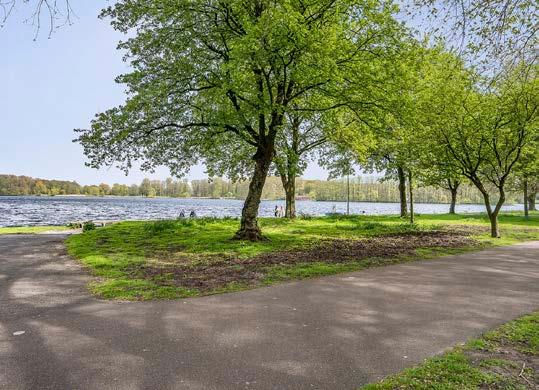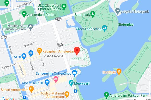 Het complex ligt aan de rand van de Sloterplas en eenmaal buiten loop je direct het Sloterpark in. Op loopafstand (5 minuten) tref je het Osdorpplein met een diversiteit aan winkels waaronder: Albert Heijn, HEMA, Blokker en verder nog vele andere populaire winkels. Vanaf het plein zijn er ook diverse openbaar vervoersmogelijkheden naar Amsterdam CS, Station Lelylaan, Sloterdijk en Schiphol. Met de auto (vrij parkeren) ben je binnen enkele minuten op zowel de A10, A9 als A4.