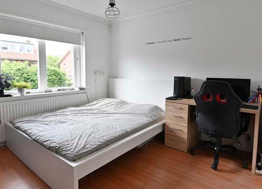 Vanaf de overloop op de eerste verdieping heb je toegang tot drie slaapkamers en de badkamer. De slaapkamers zijn van verschillend formaat, hebben een inbouwkast en zijn aangenaam licht.