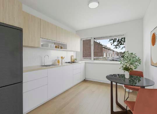 Dit appartement biedt het comfort en de gezelligheid van een huis, gecombineerd met de voordelen van een appartement. Verdeeld over twee verdiepingen, geeft deze maisonnette je het gevoel van ruimte en privacy. De benedenverdieping herbergt de woonruimtes, waar je kunt ontspannen, koken en dineren, terwijl de bovenverdieping ruimte biedt voor een rustige nachtrust. Deze indeling zorgt voor een natuurlijke scheiding tussen leef- en slaapgedeeltes, wat ideaal is voor een comfortabele woonervaring.