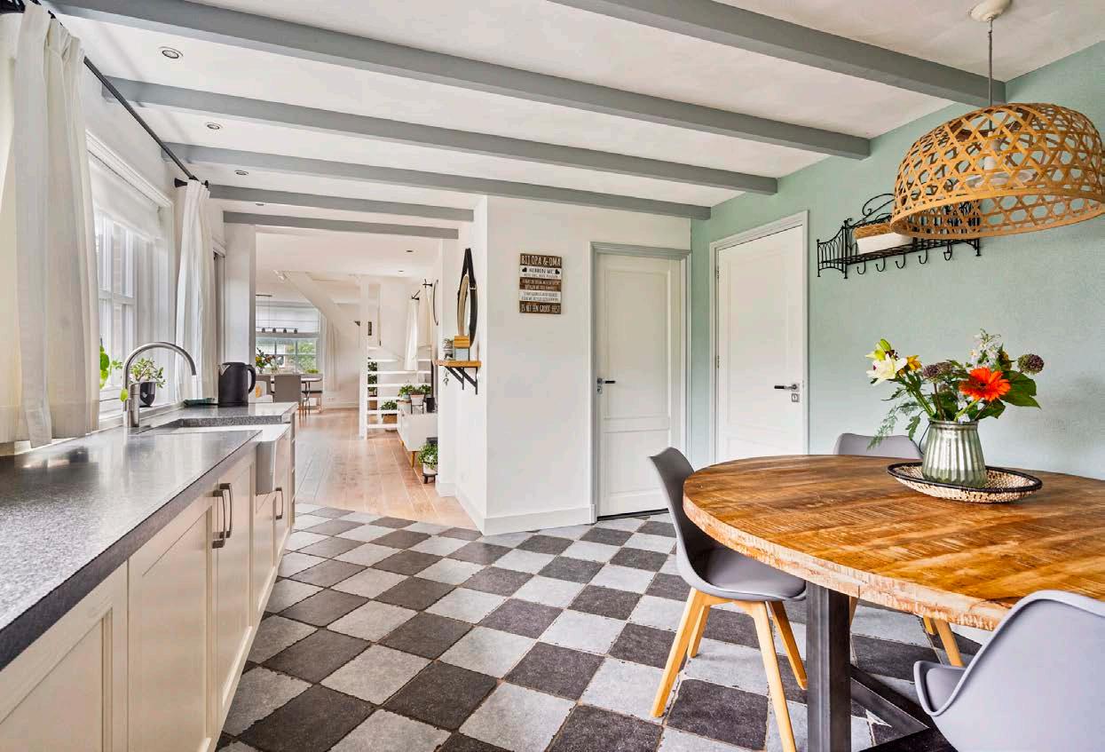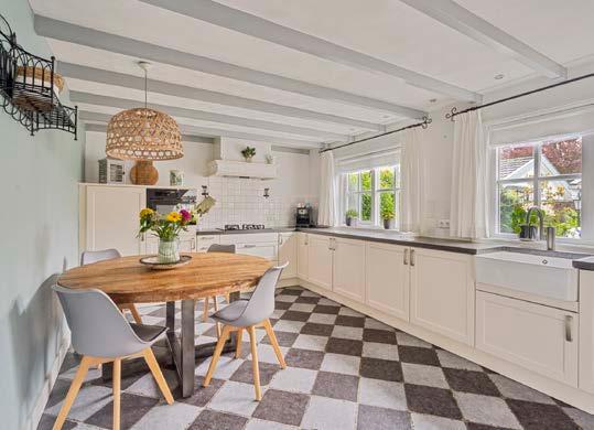 De keuken, gelegen op de begane grond, is landelijk en ruim ingericht. Hier kun je je kookkunsten de vrije loop laten. Denk aan lange gezellige avonden waarin je samen met vrienden en familie geniet van heerlijke maaltijden, bereid met liefde in deze goed uitgeruste keuken. In de keuken kun je een gezellige eettafel kwijt waaraan je herinneringen kunt creëren aan gezellige diners en gesprekken die tot in de late uurtjes doorgaan.