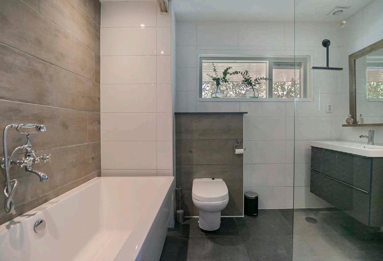 Op de eerste verdieping is een tweede badkamer (2017)gelegen. Deze ruimte is volledig betegeld en compleet ingericht met een ligbad, douche, wastafelmeubel met spiegel, toilet en een raam dat zorgt voor het natuurlijke lichtinval. Laat het bad vollopen en kom volledig tot rust!