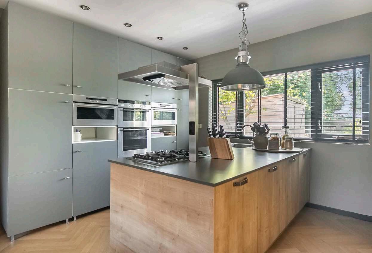 De open leefkeuken uit 2017 is een ware droom voor culinaire liefhebbers, met een scala aan moderne apparatuur, waaronder twee koelkasten (waarvan één met vrieslade), een stoomoven, twee ovens, een combi magnetron, een gaskookplaat en een vaatwasmachine.