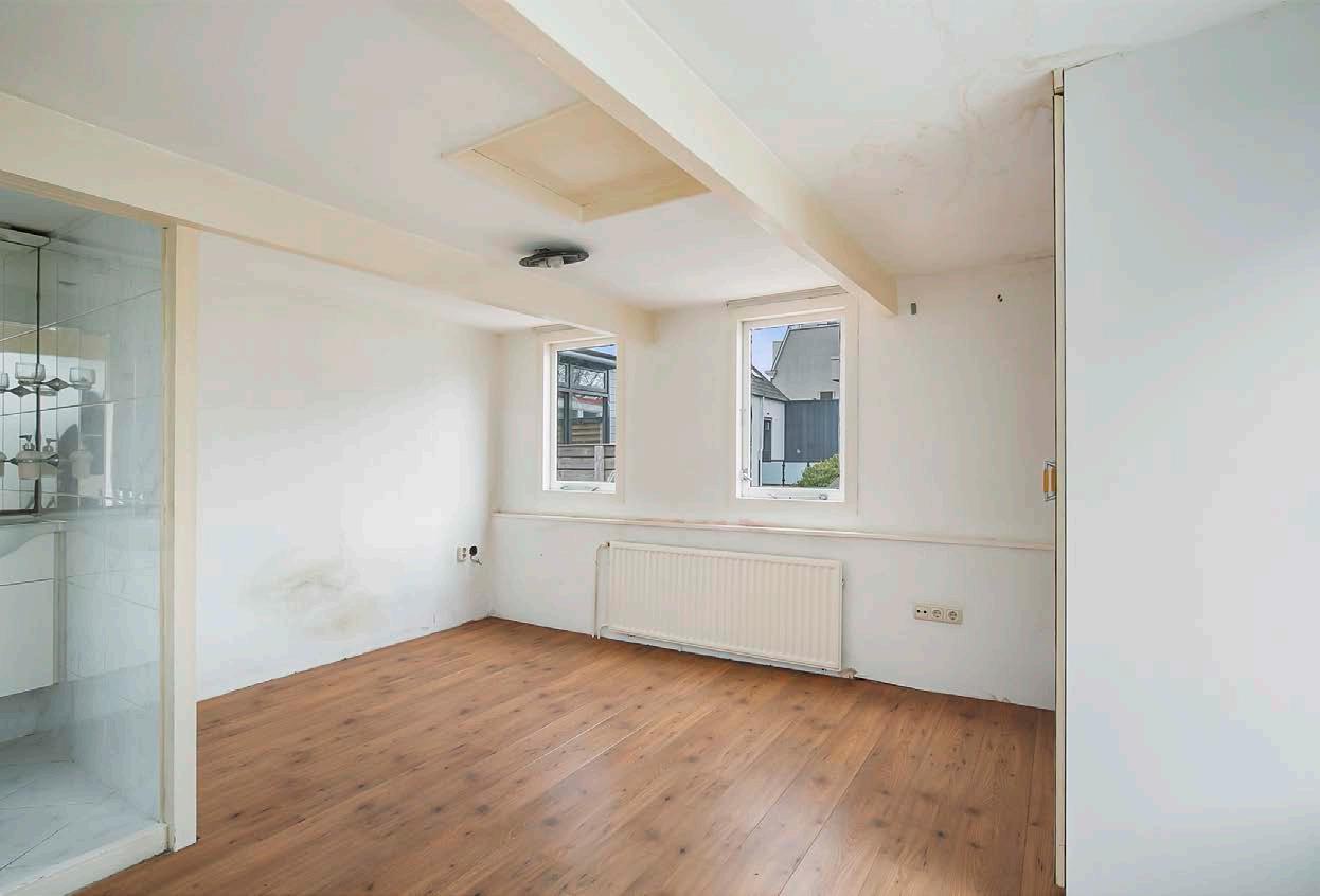 De woonkamer heeft een fijne lichtinval en dient geheel naar eigen smaak te worden afgewerkt en gemoderniseerd. Geef de wanden frisse kleuren en leg een mooie vloer waardoor jij over de eerste basis beschikt om te voortborduren op jouw woonwensen. Uiteraard heb je voldoende ruimte om een gezellige zit-en eethoek te plaatsen.