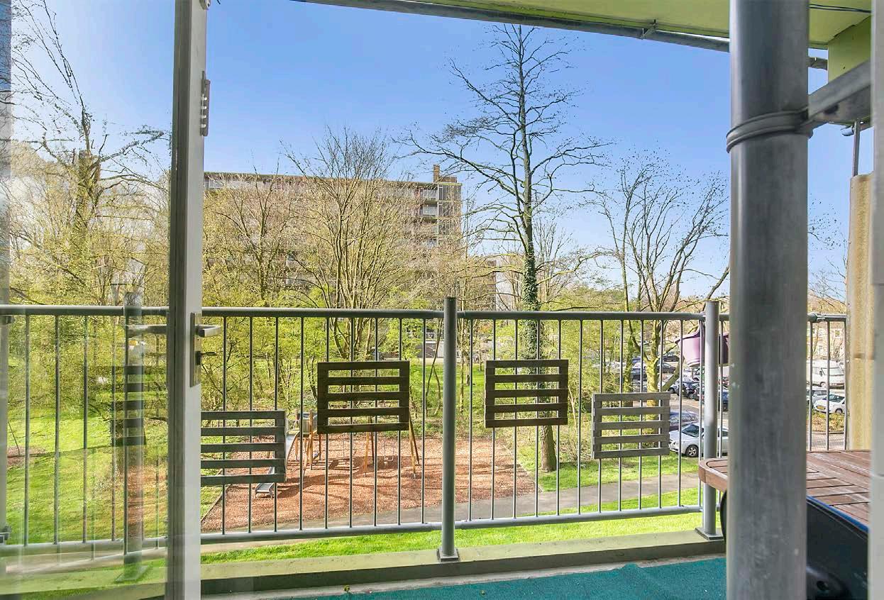 Via de woonkamer kom je op het fijne balkon op het zuidwesten; een heerlijke buitenruimte om lekker van het zonnetje te genieten. Daarnaast is er voldoende ruimte om een gezellig zitje neer te zetten, evenals wat potten met kleurrijke bloemetjes.