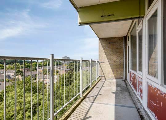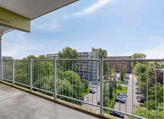 Vanuit de woonkamer stap je zo het balkon op, waar je dankzij de perfecte zuidligging volop van de zon kunt genieten. Dit is dé plek voor een ontspannen start van je dag of een fijne borrel in de middagzon.