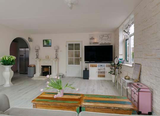 Stap binnen in deze charmante vrijstaande woning en voel direct de warme sfeer die de ruime woonkamer van 39 vierkante meter uitademt.