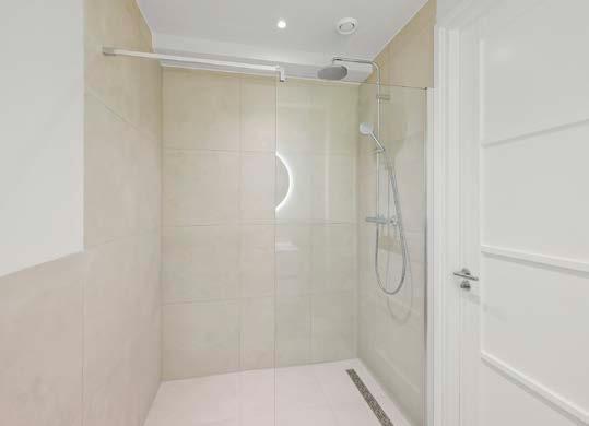 De badkamer is een toonbeeld van luxe en comfort. Een inloopdouche met regendouche, een modern wastafelmeubel en stijlvolle tegels creëren een spa-achtige sfeer waar je heerlijk kunt ontspannen na een lange dag. Het aparte toilet is een praktisch pluspunt.