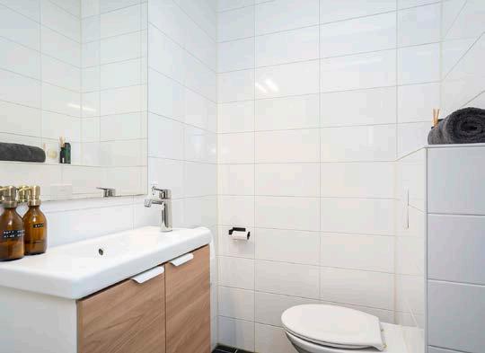 Tegenover de keuken bevindt zich de badkamer met wastafelmeubel, wandtoilet en inloopdouche. Kortom, van alle gemakken voorzien!