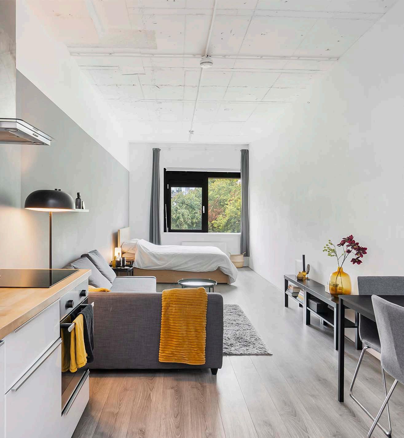 Welkom en laat je verrassen; wat een fijne stek! De studio is praktisch opgezet als open ruimte met een hoog plafond, waardoor je het op meerdere manieren in kunt richten. Het geheel is instapklaar afgewerkt met een mooie laminaatvloer en rustige kleuren; een ideale basis om voort te borduren met jouw eigen stijl.