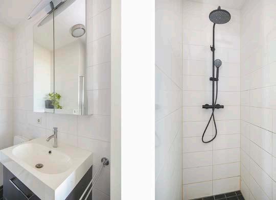 Vanuit de woonkamer heb je toegang tot de netjes afgewerkte badkamer. De badkamer is geheel betegeld en van alle gemakken voorzien.
