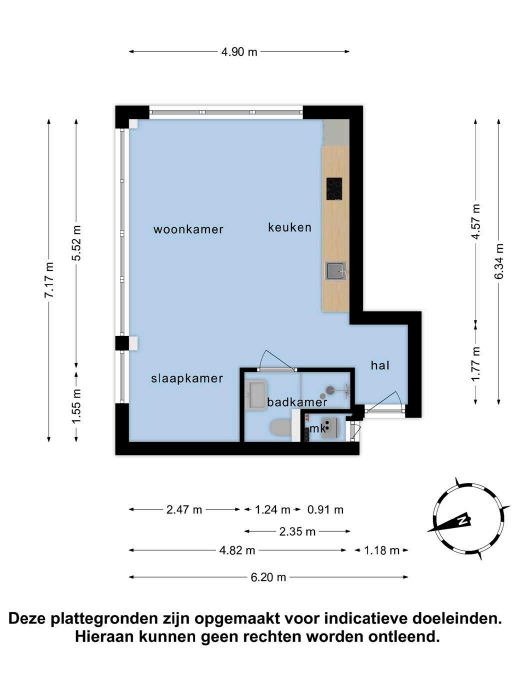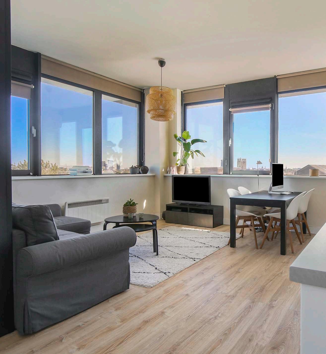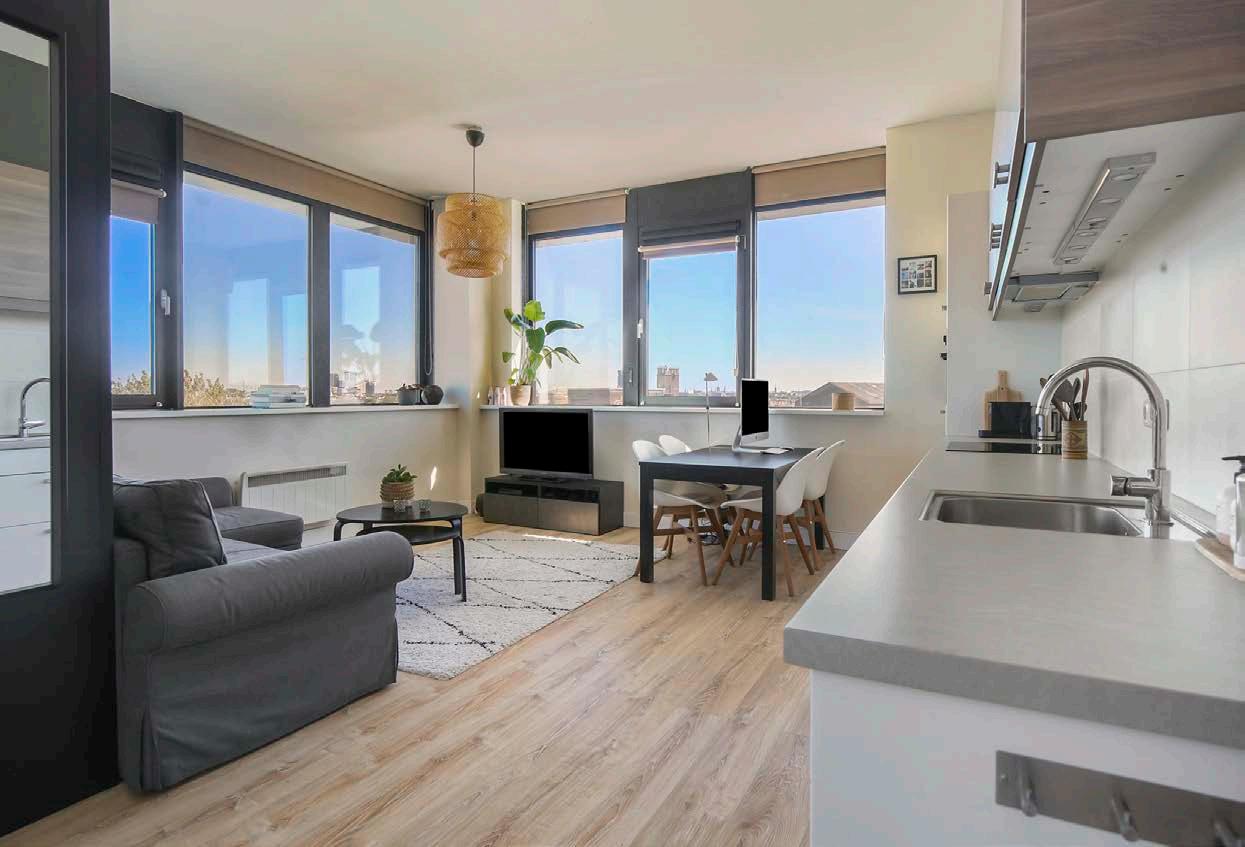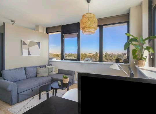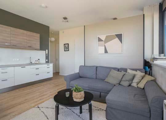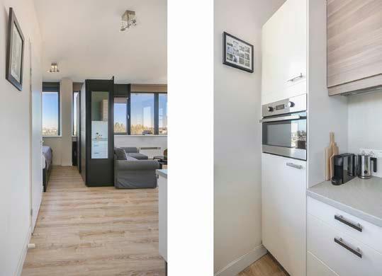 Vanuit de hal stap je in de lichte woonkamer met open keuken. Een van de grootste pluspunten van deze studio is het unieke uitzicht. Vanaf de vijfde verdieping geniet je van een prachtig panorama over de stad en het omliggende landschap. En het beste van alles? Geen bovenburen die jouw rust verstoren.