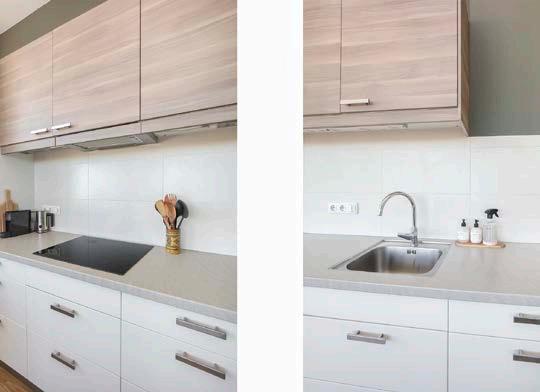 De keuken is netjes afgewerkt en voorzien van een inductiekookplaat, vaatwasser, magnetron en een koelkast met vriesvak. Alles wat je nodig hebt om heerlijke maaltijden te bereiden.