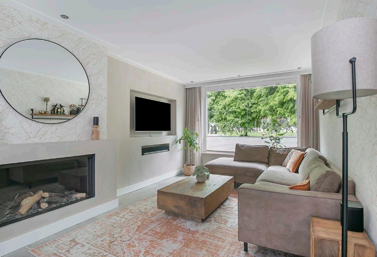 Via de twee dubbele openslaande deuren in de keuken kom je in de tuin, terwijl de fraaie houten schuifdeuren je leiden naar de naastgelegen tvkamer. Vanuit hier is er een praktische bijkeuken/ berging bereikbaar.