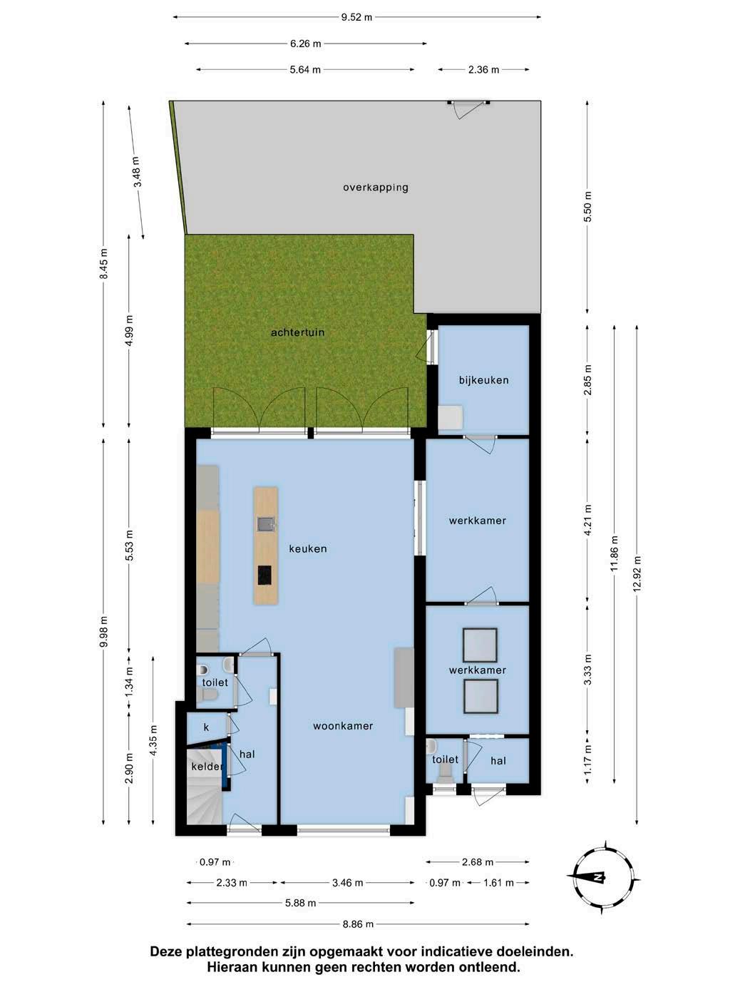 Aan de zijkant van de woning zijn een drietal ruimtes gebouwd die allerlei mogelijkheden bieden zoals een eigen praktijk/kantoor met toilet bereikbaar via een eigen ingang, aangrenzend nog twee ruimtes die ook als slaap of werkkamers kunnen functioneren. De achtertuin heeft in de ochtend tot de avond de zon, op koudere avonden is het heerlijk onder de verwarmde overkapping. Ook is er altijd plek om je auto voor je deur te parkeren