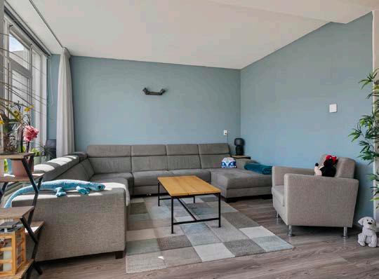 De woonkamer is een ruimte waar de zon vrij spel heeft door de grote ramen. De deur naar de tuin zorgt voor een naadloze overgang tussen binnen en buiten, waardoor je het hele jaar door van de tuin kunt genieten. Het is de perfecte plek voor gezellige avonden, ontspannen weekenden en het vieren van speciale momenten met dierbaren.