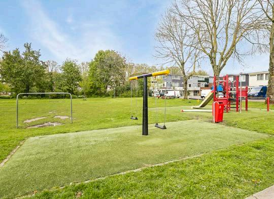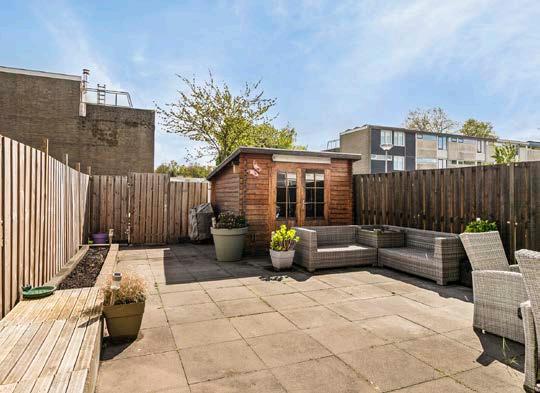 De tuin is een oase van rust en zonlicht. Gelegen op het zuiden geniet je hier van vroege ochtenden tot late avonden van de zon. De tuin is onderhoudsarm en biedt genoeg ruimte voor kinderen om te spelen en voor volwassenen om te ontspannen of te entertainen. De houten berging met elektra is ideaal voor het opbergen van tuinspullen en fietsen, en op de eigen oprit parkeer je gemakkelijk je auto.