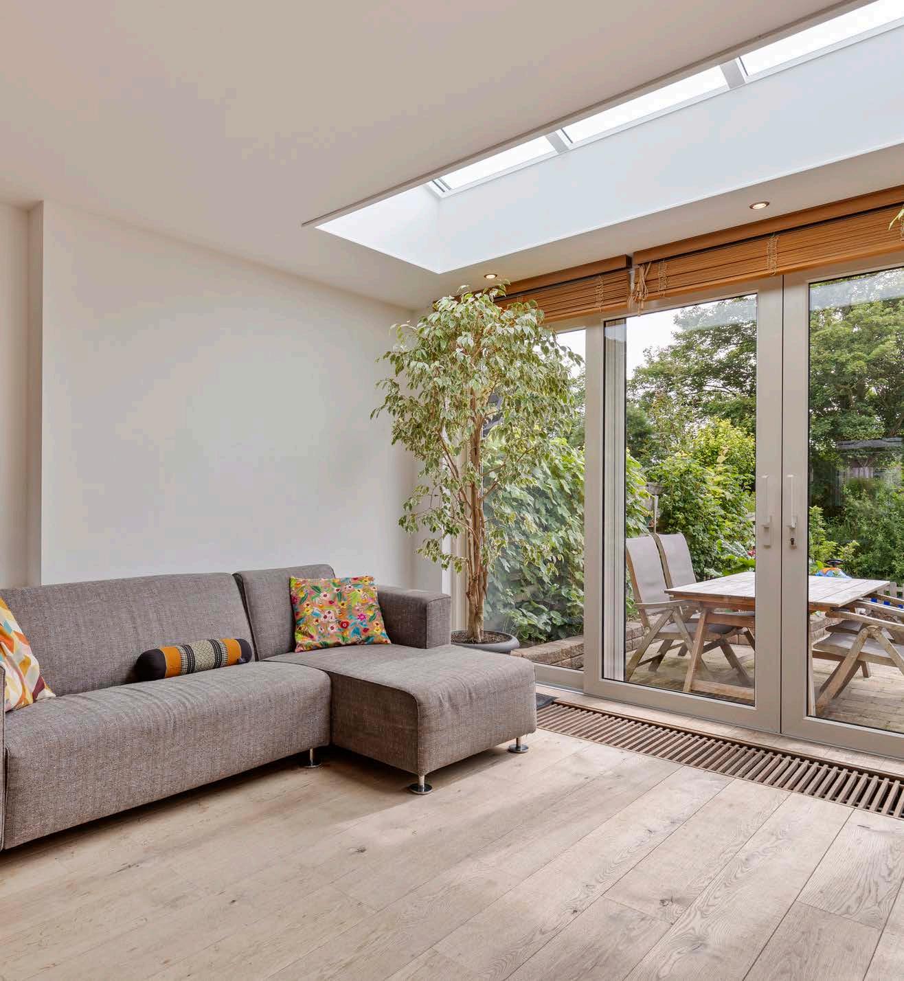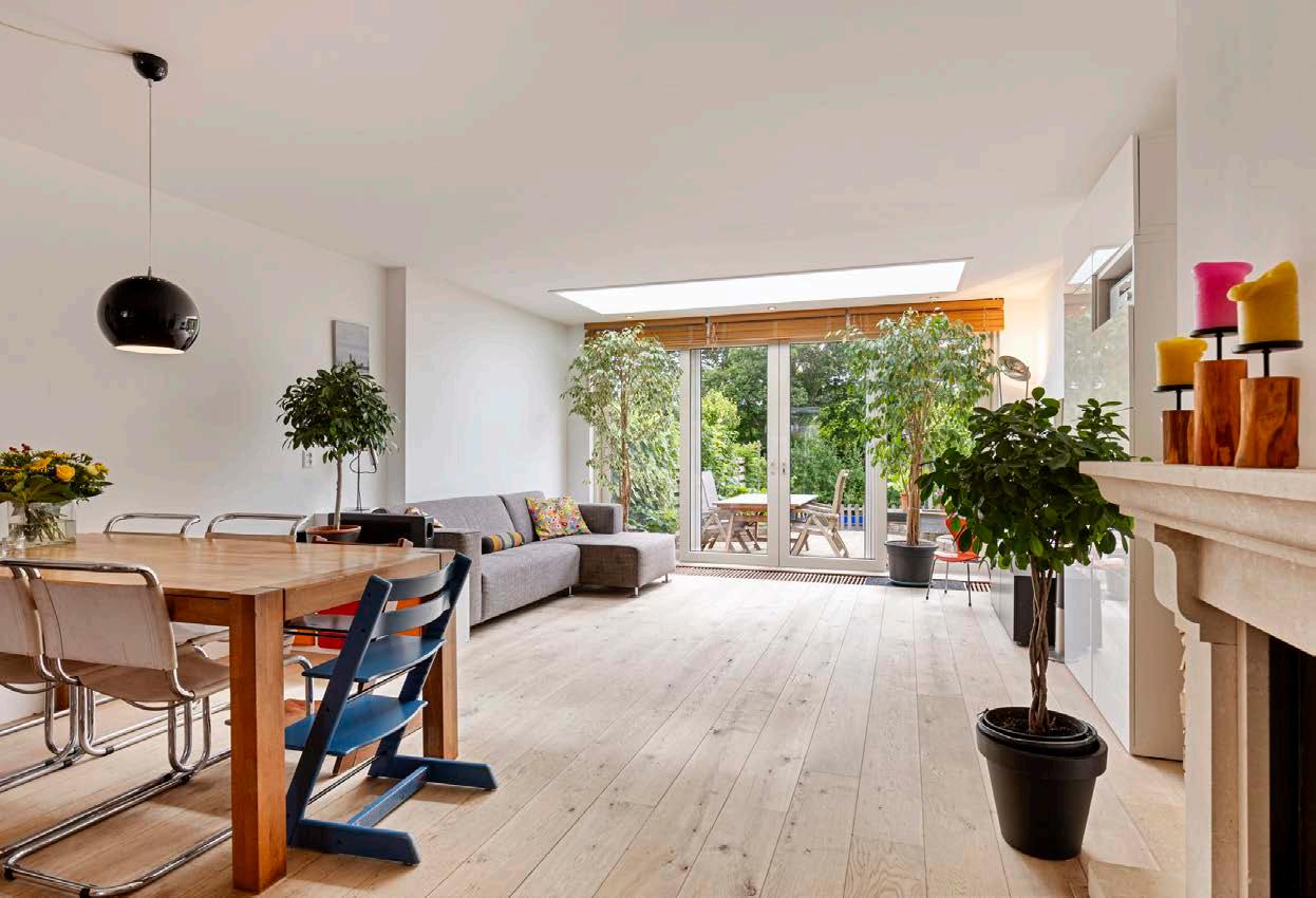 De ruime, uitgebouwde woonkamer biedt veel lichtinval en comfort. Deze ruimte is perfect voor dagelijkse ontspanning of het ontvangen van gasten. Met voldoende plek voor een grote zithoek en eettafel, kun je hier echt een thuis creëren waar je van houdt.