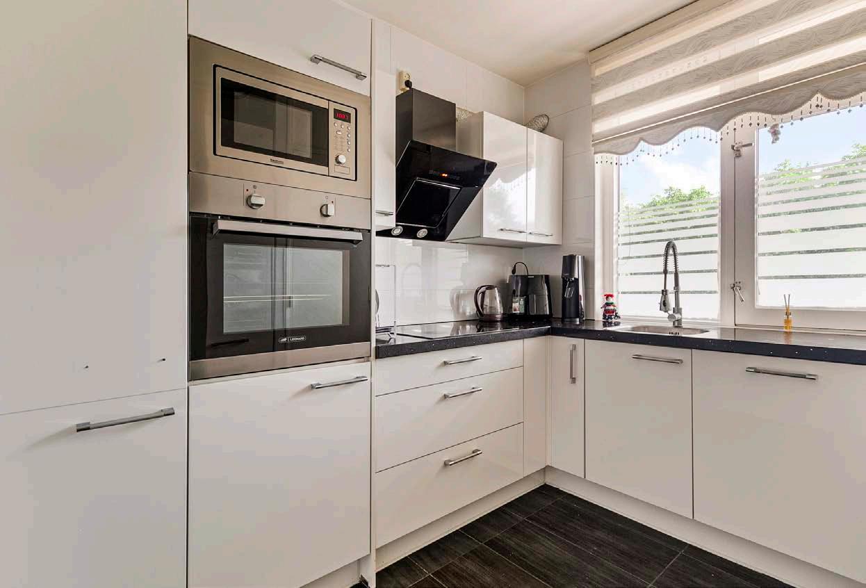 De goed onderhouden keuken is uitgerust met alle benodigde apparaten en biedt een eigentijdse uitstraling.