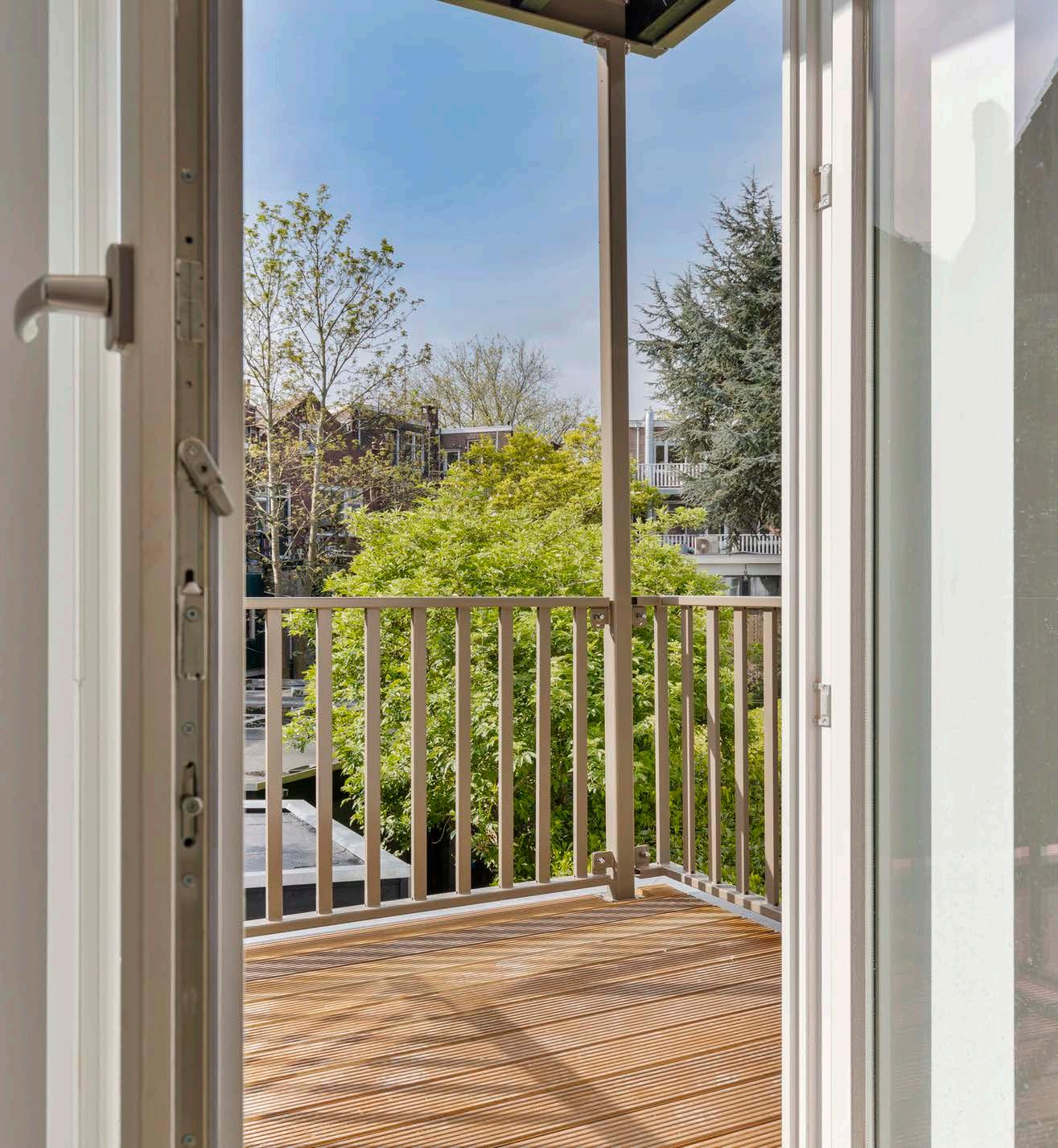En dan dat balkon… Wauw. Zuidelijk gelegen en dé plek waar je in alle rust en privacy kunt genieten van de zon. Stel je eens voor: ’s ochtends wakker worden met een kop koffie, of na het werk nog even dat laatste sprankje avondzon meepikken – hier kan het allemaal.