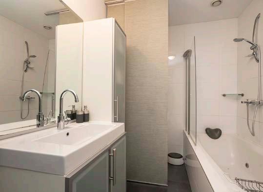 De ruime badkamer is een wellness-ervaring op zich, met vloerverwarming, een lig(bubbel)bad/ douche combinatie, wastafelmeubel en een wandcloset. De wasmachine-aansluiting en de inbouwkast met Warmte Terugwin installatie voegen extra gemak en efficiëntie toe aan je dagelijkse routine.