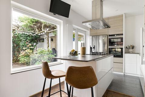 Thekitchenwascompletelyreplacedin2017and thereforehasallthenecessaryequipment(Spacious wineclimatecabinet,fridge-freezercombinationwith waterandicedispenser,stainlesssteelsink, dishwasher,acombimicrowaveovenandacombi steamovenandkitchenislandwith5-burnergas stove(incl)wokburnerandextractorhood(witha direct exhaust to the outside) and a Quooker.