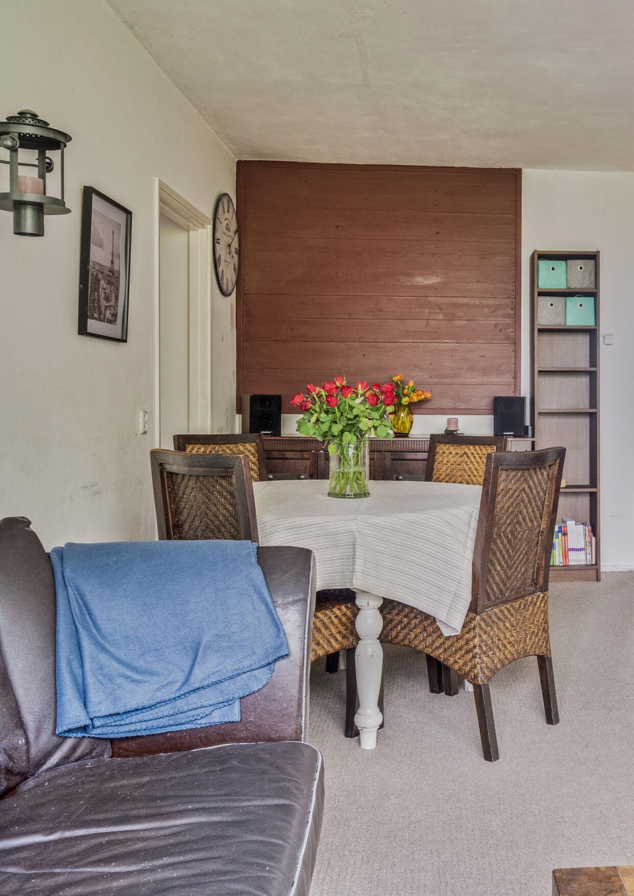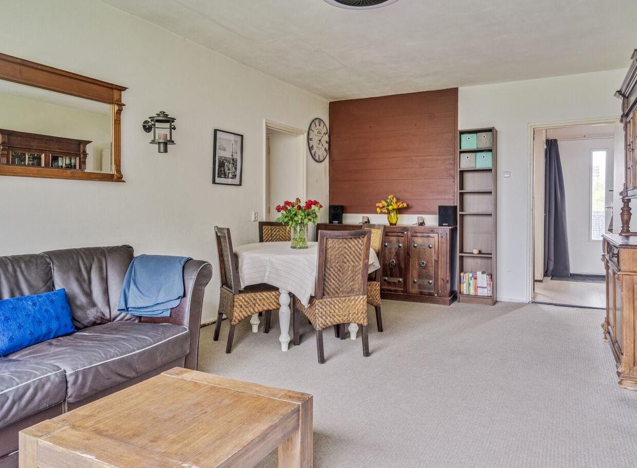 De woonkamer is licht en biedt ruimte voor zowel een zit- als eethoek.