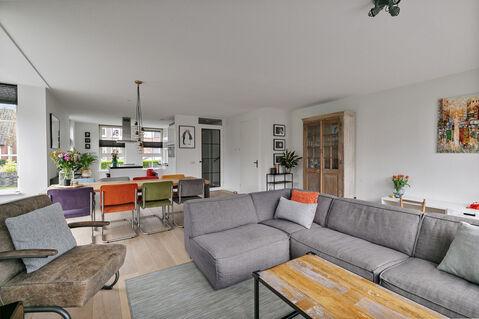 De woonkamer is het kloppend hart van het huis, waar het dagelijks leven zich afspeelt. De grote ramen zorgen voor een constante verbinding met buiten en maken van de woonkamer een plek waar u elk seizoen de veranderingen in de natuur kunt waarnemen.