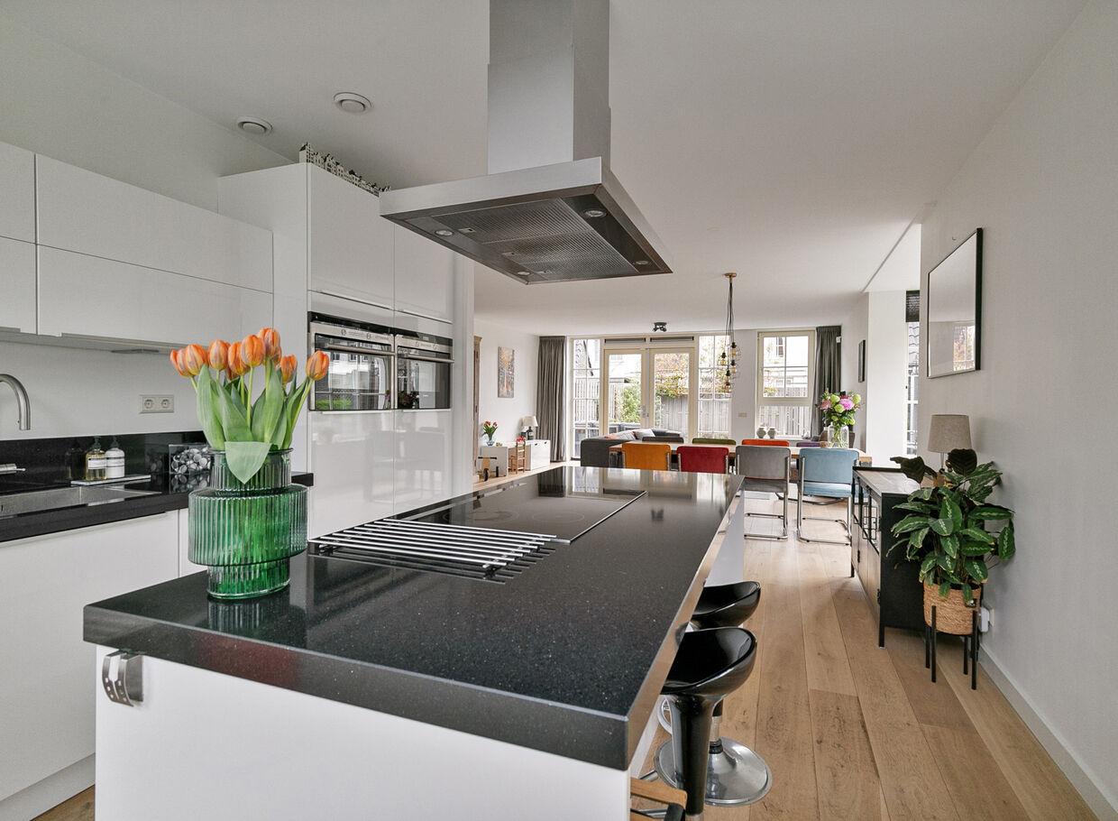 De keuken is een droom voor elke thuiskok. Voorzien van hoogwaardige inbouwapparatuur en een praktisch kookeiland, biedt deze ruimte niet alleen functionaliteit maar ook een centrale plek in het huis waar men samenkomt.