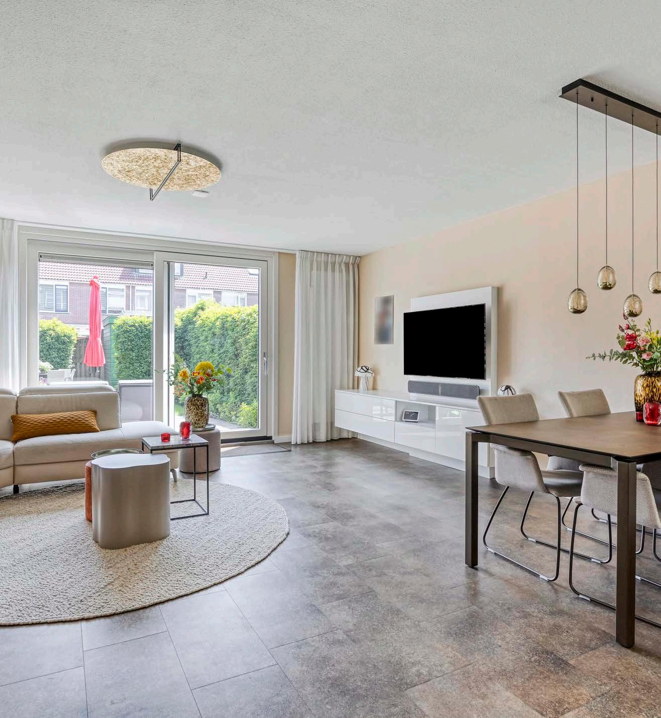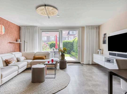 De woonkamer is een fijne leefruimte waar het natuurlijke licht rijkelijk naar binnen valt dankzij de brede pui aan de achterzijde. Hier geniet je van uitzicht én directe toegang tot de achtertuin. De ruimte is netjes afgewerkt en biedt volop mogelijkheden voor een gezellige zithoek en een eettafel.