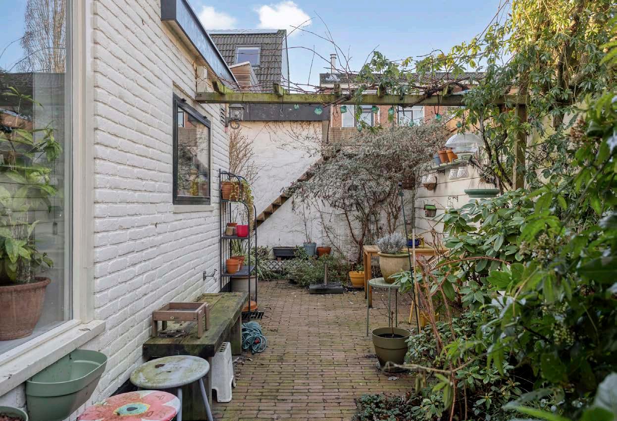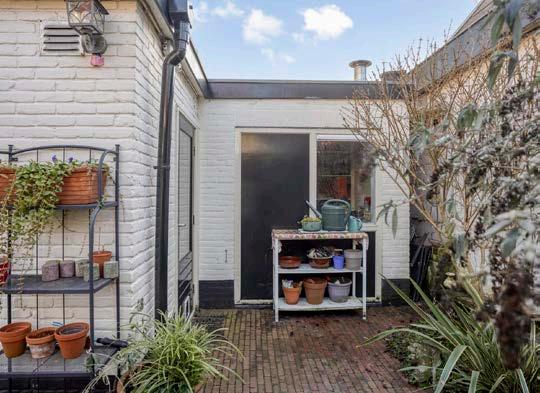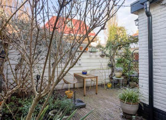 De knusse tuin is een perfecte plek om te ontspannen en biedt een overkapping/berging. Ideaal voor het opbergen van spullen en voor het plaatsen van fietsen.