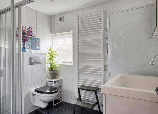 De badkamer is voorzien van een wastafelmeubel, toilet en mechanische ventilatie. Daarnaast is er meer dan genoeg ruimte voor de wasmachine, droger en opbergmogelijkheden voor je badkameraccessoires.