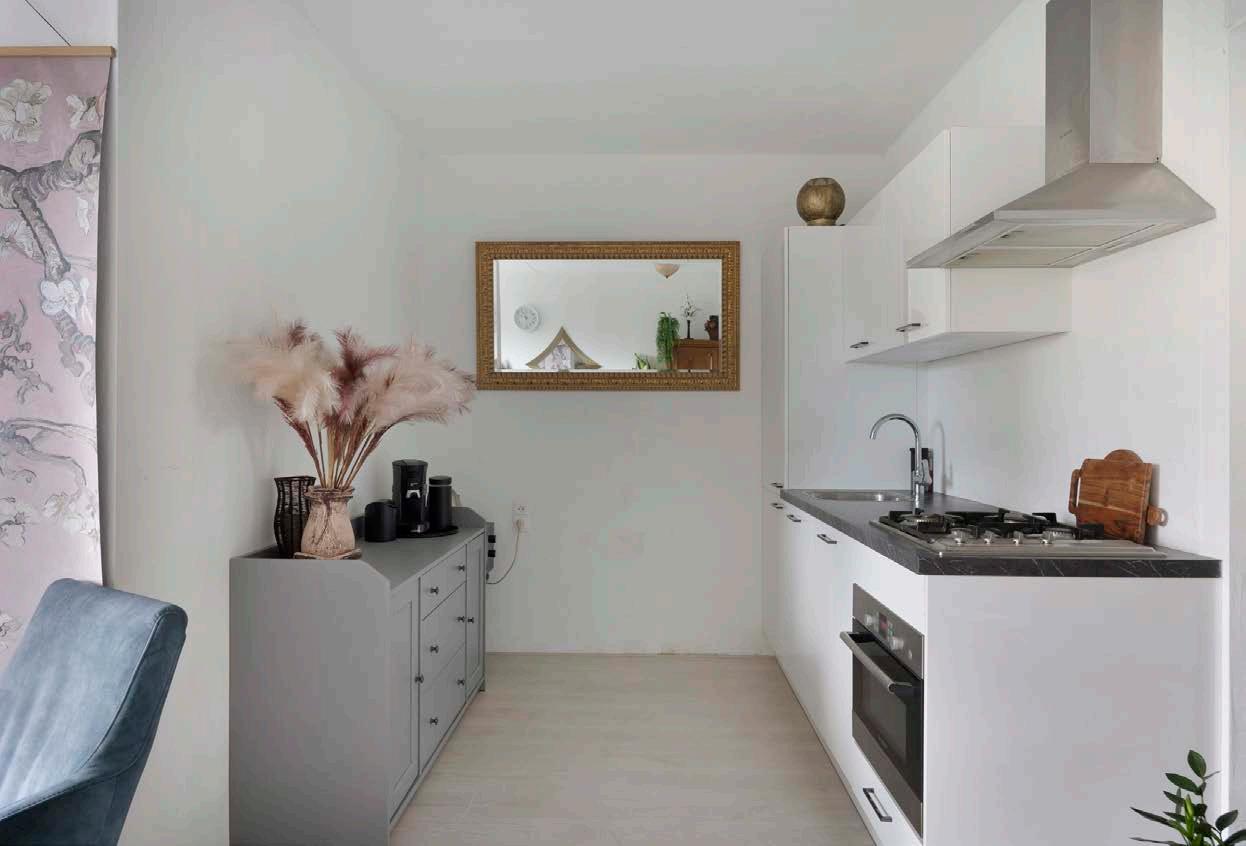 De woonkamer voelt dankzij de grote ramen heerlijk licht aan en de recent vernieuwde laminaatvloer geeft de ruimte een strakke, moderne uitstraling. Dit is dé plek waar jij thuiskomt en geniet van een goed boek, een serie op de bank of gezellige avondjes met vrienden.