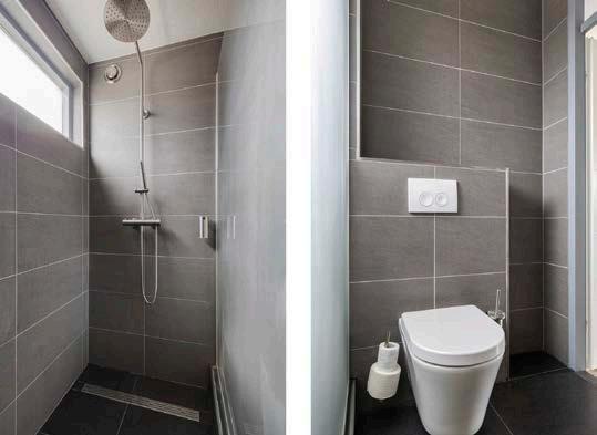 De verzorgde badkamer op de tussenverdieping is recentelijk vernieuwd en uitgerust met een luxe inloopdouche, wastafel en tweede toilet