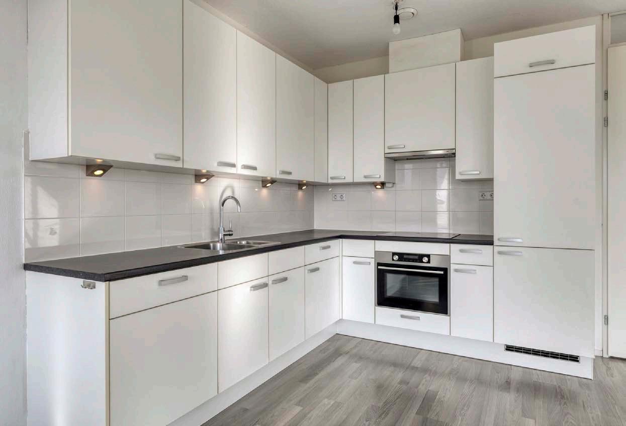 Het gaat hier om een moderne open keuken in een praktische L-opstelling, strak uitgevoerd in lichte tinten. Hierdoor ademt de ruimte een frisse, hedendaagse sfeer, terwijl de open indeling zorgt voor een gevoel van verbondenheid met de rest van het appartement. Je kunt tijdens het koken gezellig in contact blijven met je gasten, met uitzicht op de mooie woonkamer. Uitgerust met hoogwaardige inbouwapparatuur van het merk ATAG, is de keuken niet alleen stijlvol maar ook zeer functioneel.