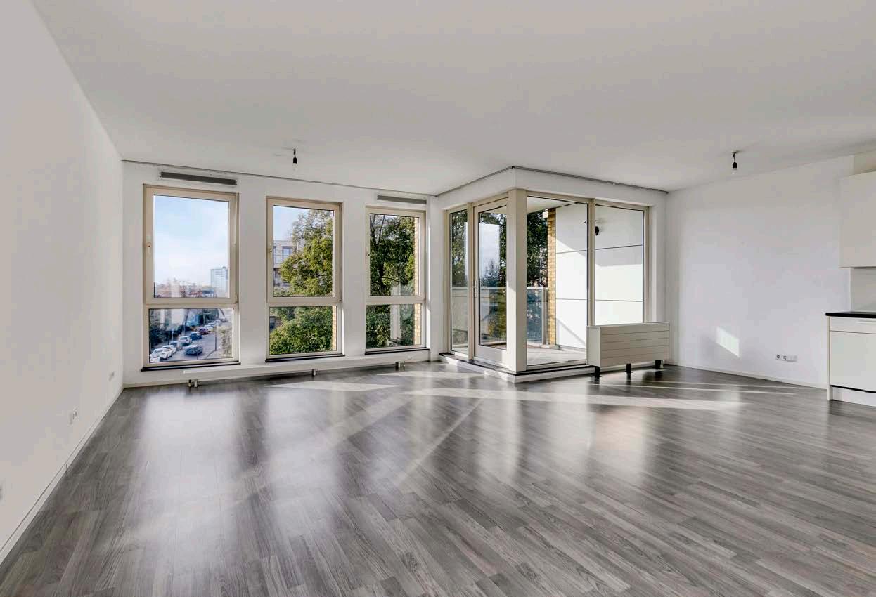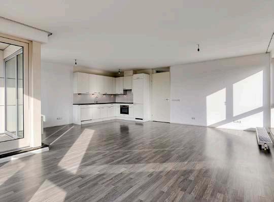 Het kloppend hart van dit appartement is zonder twijfel de lichte en royale woonkamer. Dankzij de hoekligging heb je hier een overvloed aan natuurlijk licht dat door de grote ramen aan twee zijden naar binnen valt. Dit maakt de ruimte niet alleen enorm sfeervol, maar het zorgt ook voor een aangename, open atmosfeer waarin je fantastische herinneringen creëert. De strakke vloer en neutrale wanden vormen een perfecte basis voor het realiseren van jouw persoonlijke stijl