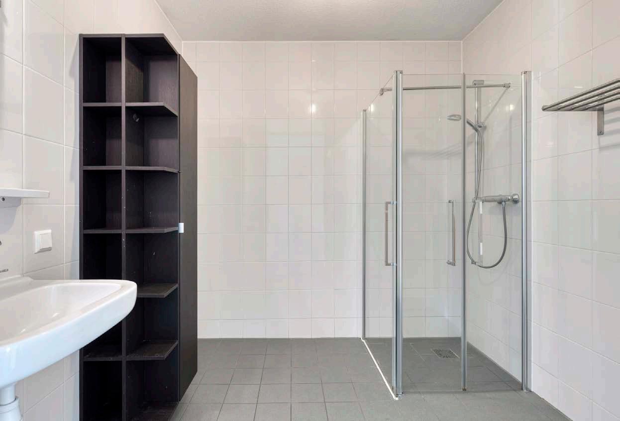 De badkamer is de plek waar je je dag begint en eindigt, en in dit appartement is die ruimte perfect ontworpen voor comfort en efficiëntie. Uitgerust met een ruime douchecabine met glazen wanden, biedt deze badkamer een nette, moderne uitstraling. Het glas creëert een open gevoel en laat het licht vrij door de ruimte stromen. De functionele opzet maakt het een genot om hier onder een verfrissende straal te stappen na een drukke dag.
