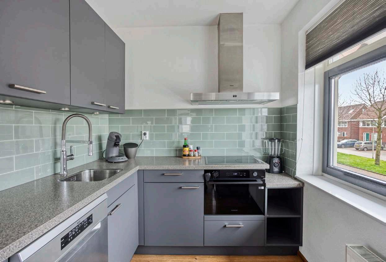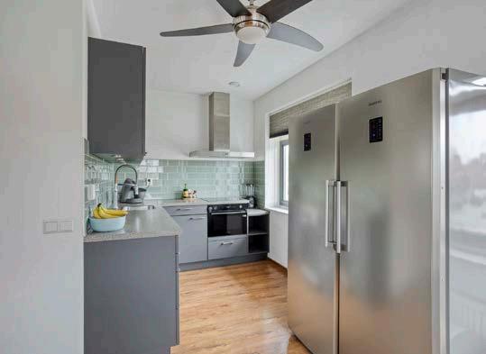 De open keuken, ingericht in een moderne L-opstelling, is geheel uitgerust met verscheidene apparatuur zoals een keramische kookplaat, vaatwasser, oven, afzuigkap en een losstaande koel/vrieskast. Dit alles resulteert in een keuken waar zowel de serieuze kok als de culinaire liefhebber zich thuis zal voelen.