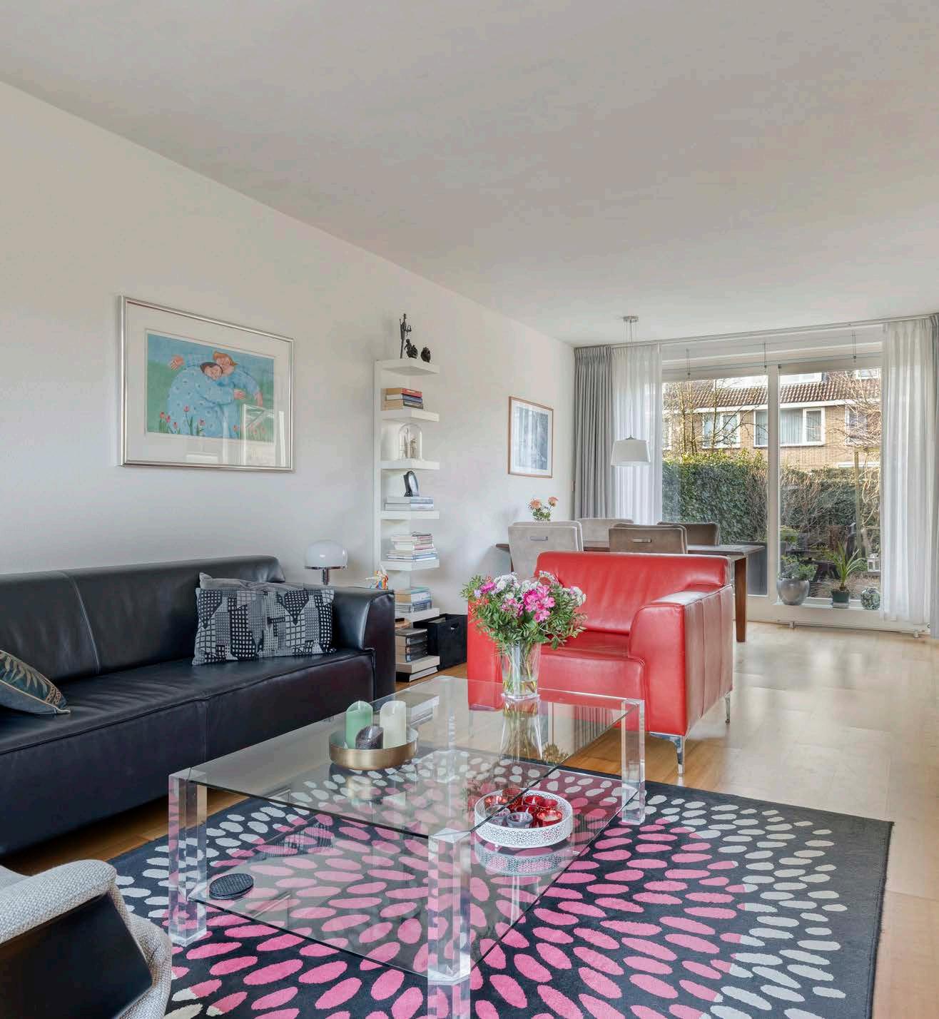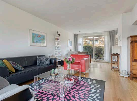 Bij binnenkomst valt u meteen de ruime hal met meterkast en het verzorgde toilet op. Vanuit de hal komt u in de lichte woonkamer, die dankzij een grote schuifpui aan de achterzijde volop daglicht toelaat en direct toegang biedt tot de prachtige tuin. Deze logische indeling zorgt voor een open en aangename leefruimte, met aan de voorzijde een gezellige zithoek en aan de achterzijde de eetkamer die centraal staat ten opzichte van de keuken. De woonkamer is verzorgd afgewerkt met een lichte vloer en wandafwerking.