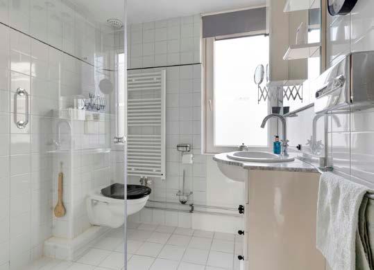 Het sanitair in de woning is weliswaar iets ouder maar goed onderhouden, wat zorgt voor een zorgeloos woongenot. De badkamer is uitgerust met een inloopdouche, wastafelmeubel en tweede toilet.